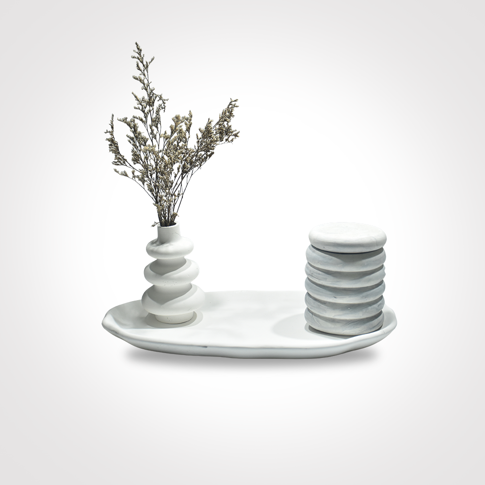 El Set Decorativo Gala es una composición artística que celebra la forma, el gesto y la materia. Diseñado como un conjunto armónico, este set transforma el concreto en una expresión sensible y elegante, ideal para espacios que buscan piezas con significado y presencia.